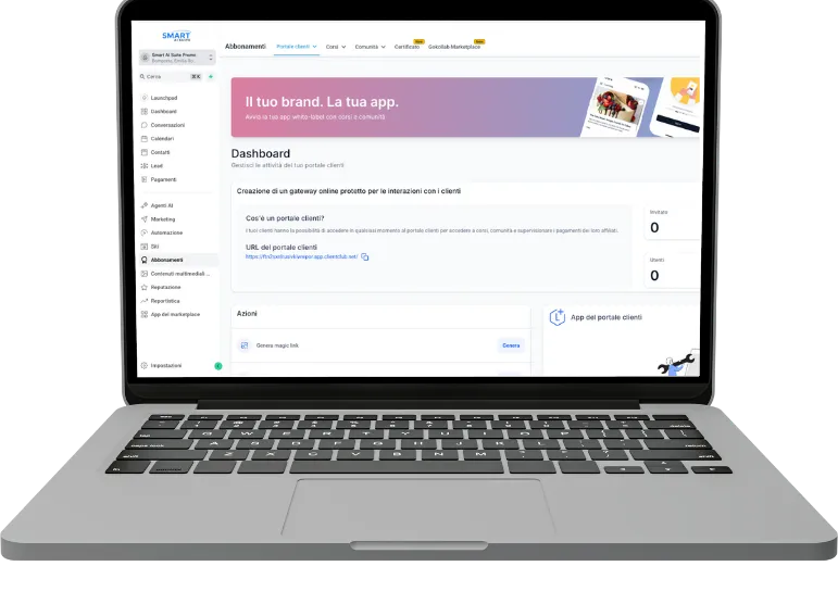 Un’unica piattaforma per marketing, prenotazioni, gestione clienti e analisi. Parti dalle funzioni che ti servono oggi e aggiungi, quando lo desideri, anche l’Intelligenza Artificiale per portare il tuo business a un livello superiore.